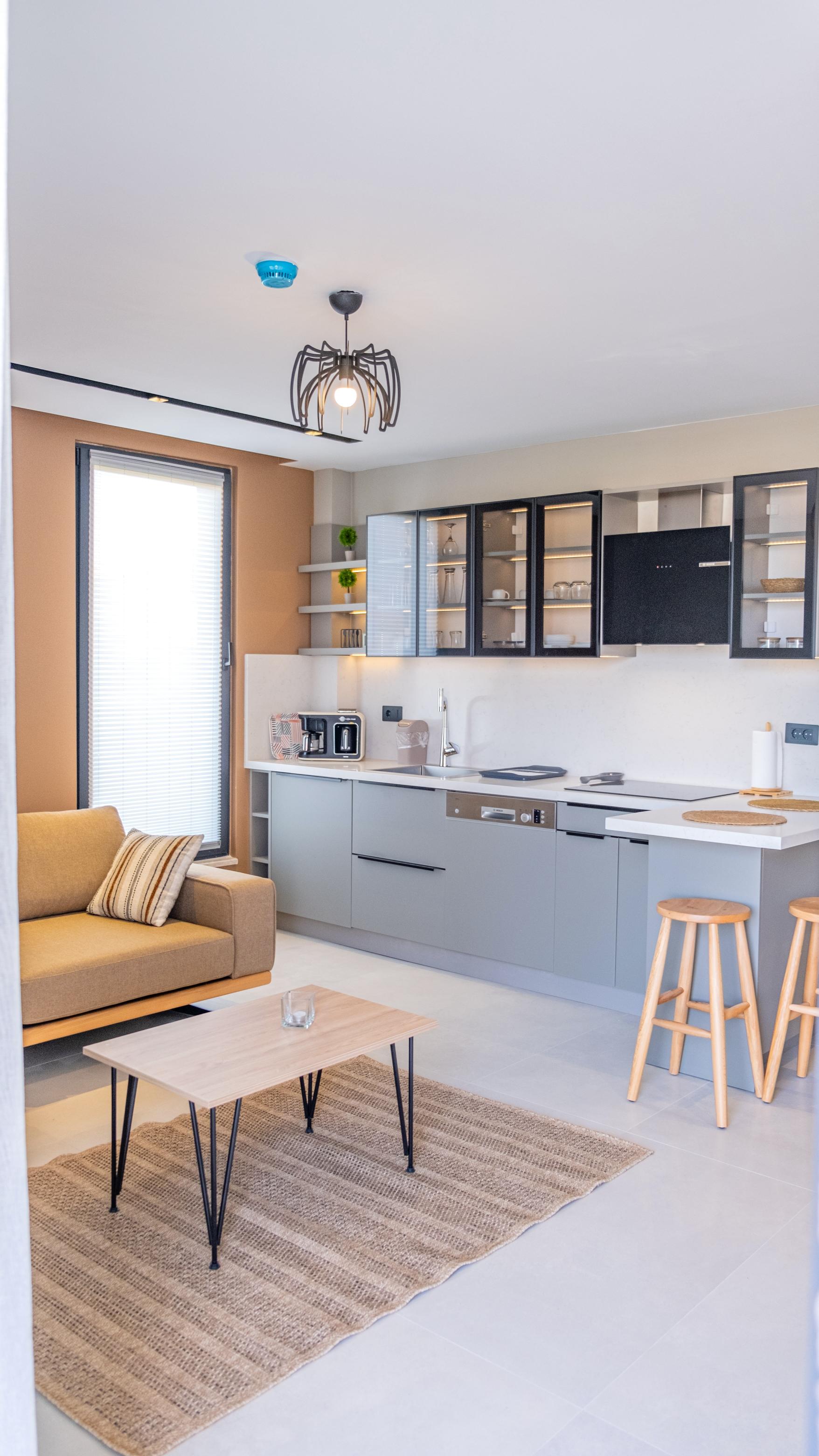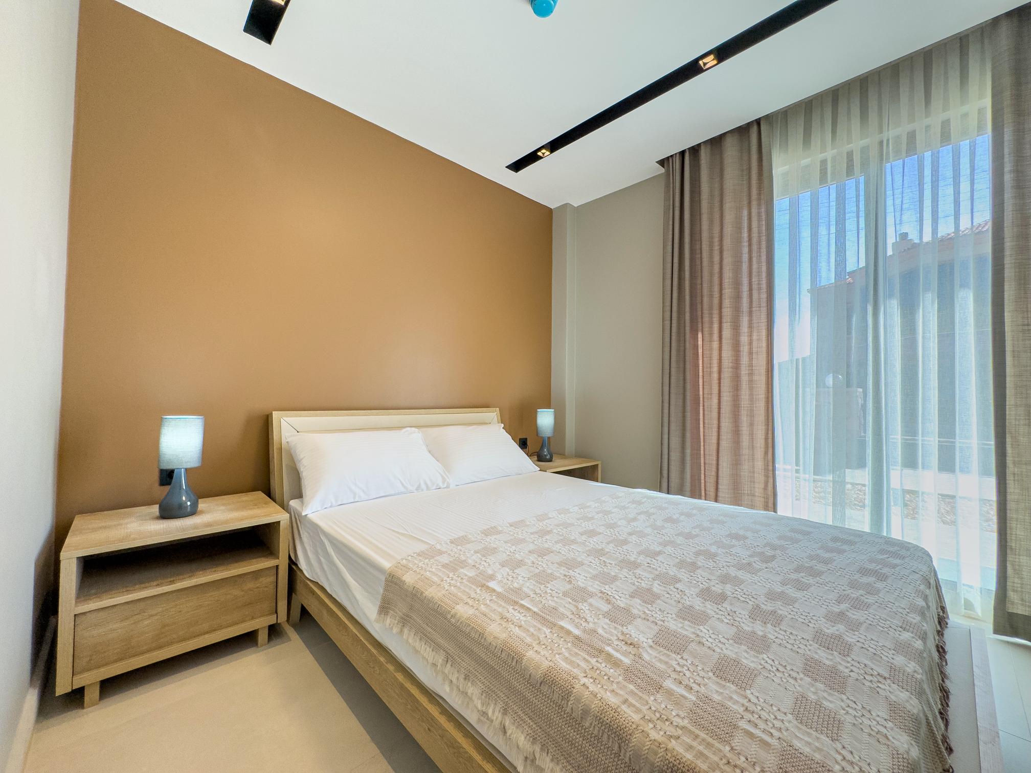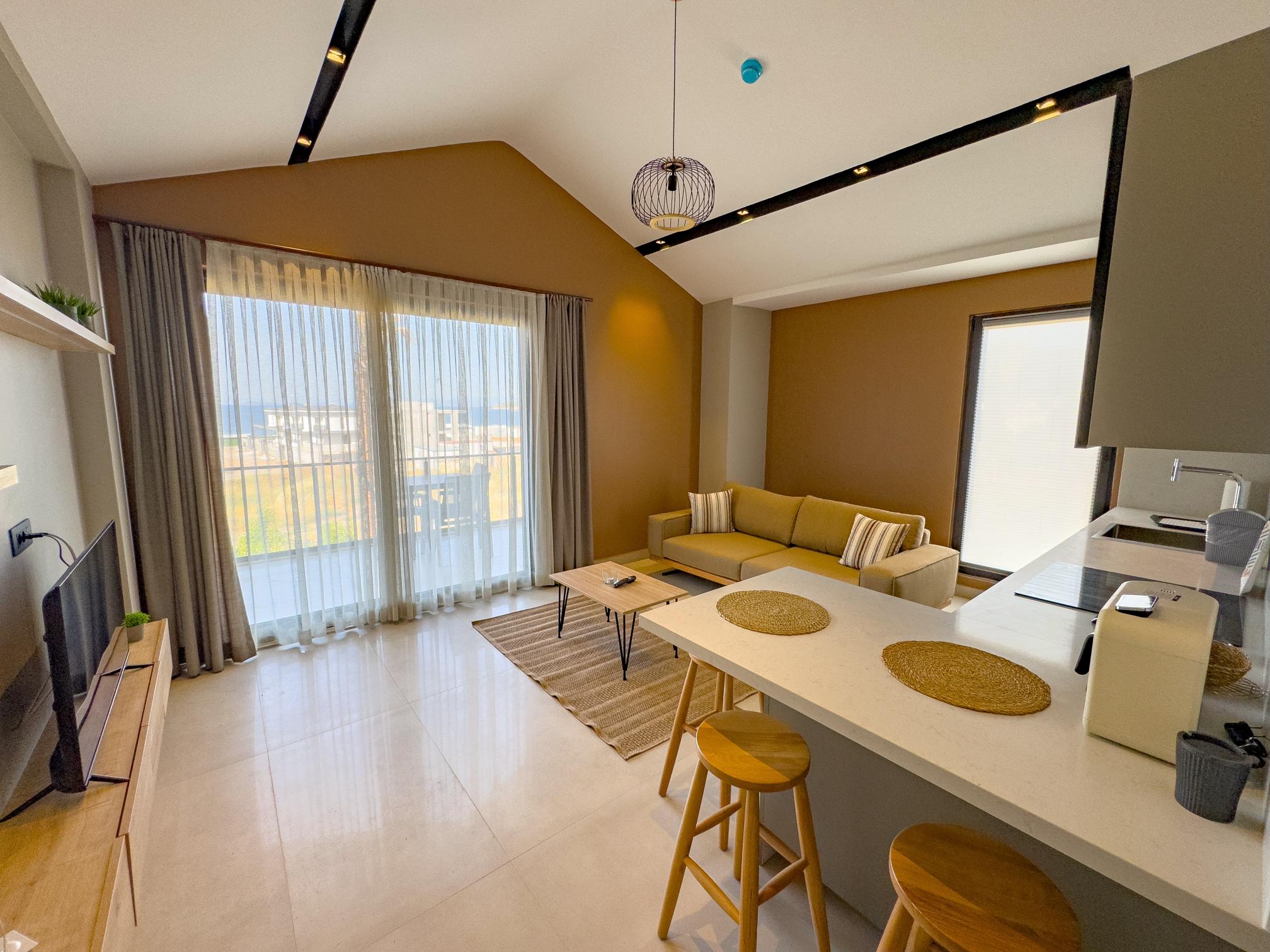 This spacious 55 m² apartment comfortably accommodates up to 4 guests. It features two bedrooms: one with a double bed and one with a single bed, plus a sofa bed in the living room for an extra guest. Guests have access to a large communal pool, an organic farming area, a small gym, and a bar, all just a short walk from the beach. The property is adults-only, suitable for guests aged 10 and above, and does not allow pets.