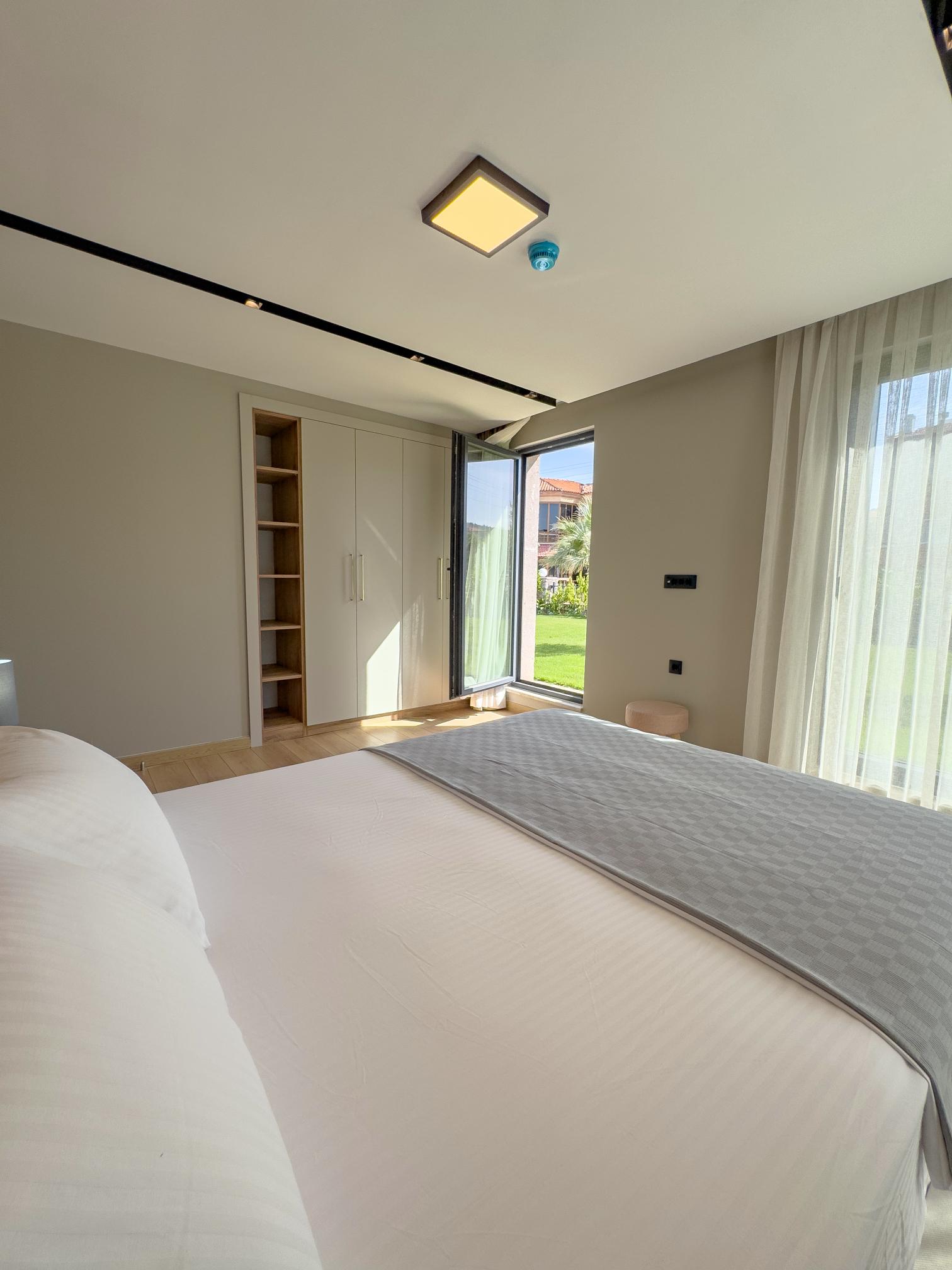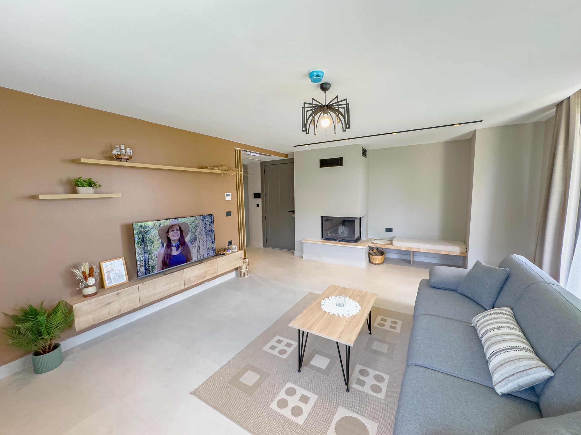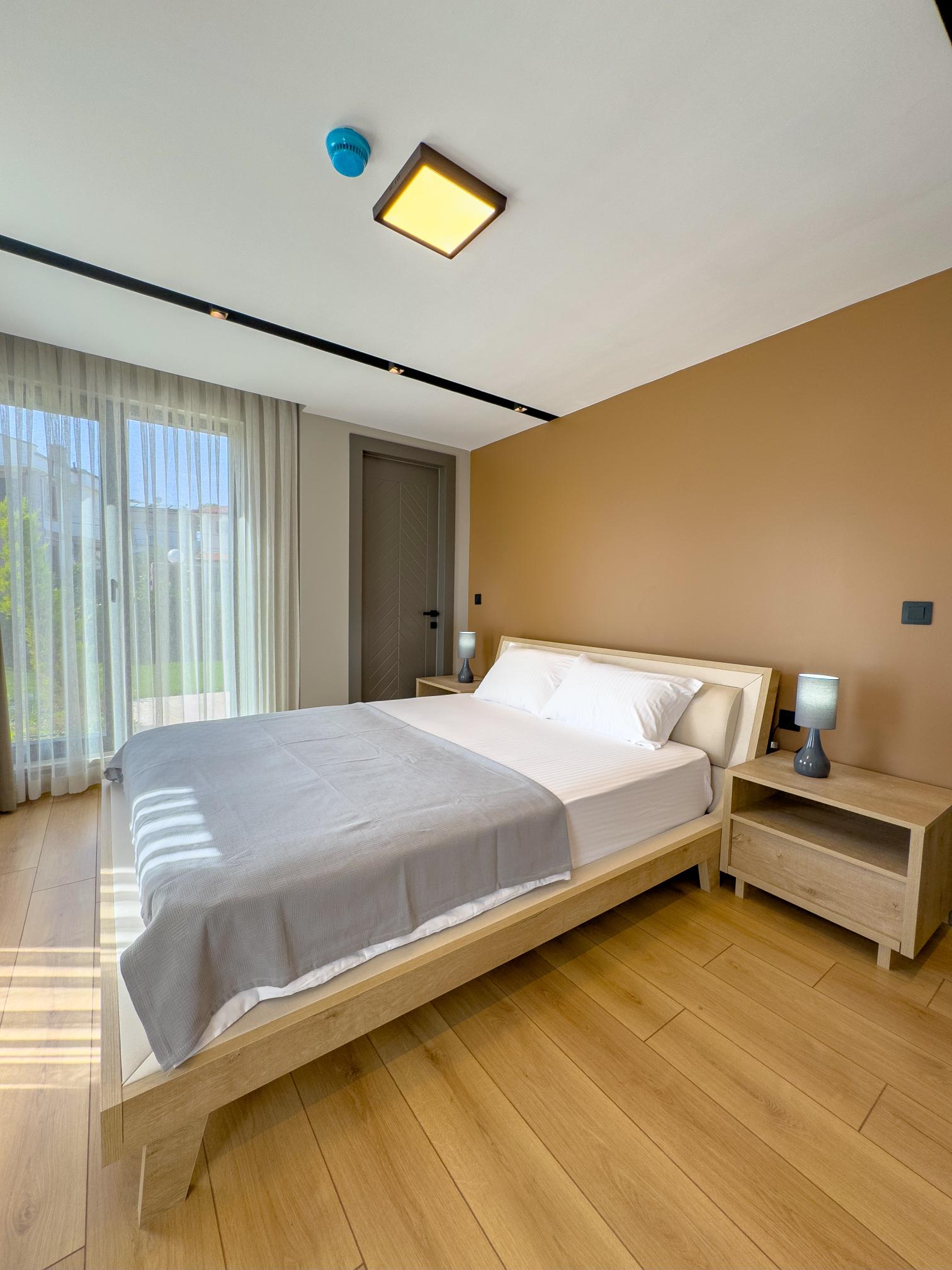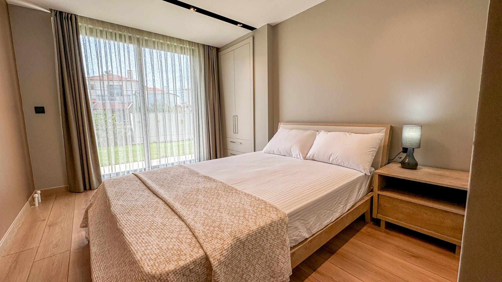Our spacious 75 m² ground-floor apartment is perfect for up to 5 guests, featuring 2 bedrooms with double beds and a comfortable sofa bed in the living room. Just a short walk from the beach, it offers access to a large communal pool, an organic farming area, a small gym, and a bar. Designed for adults aged 10 and above, the property does not allow pets.