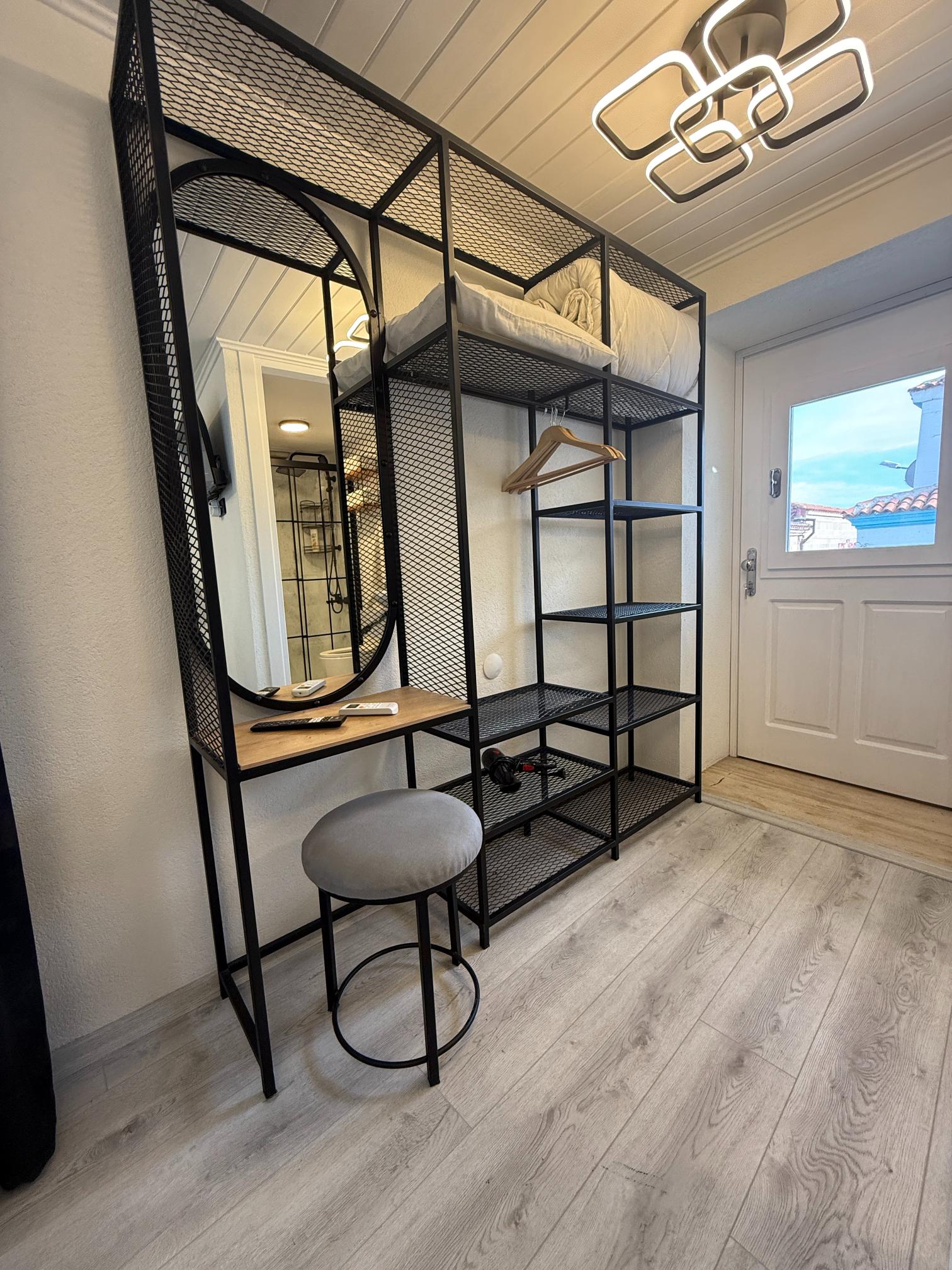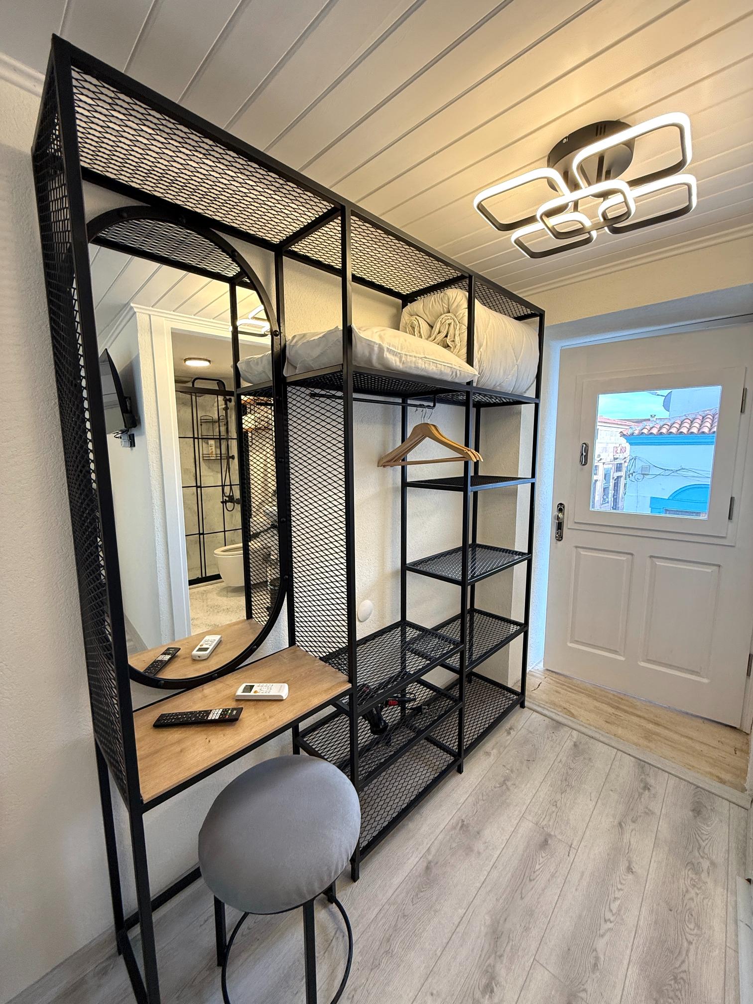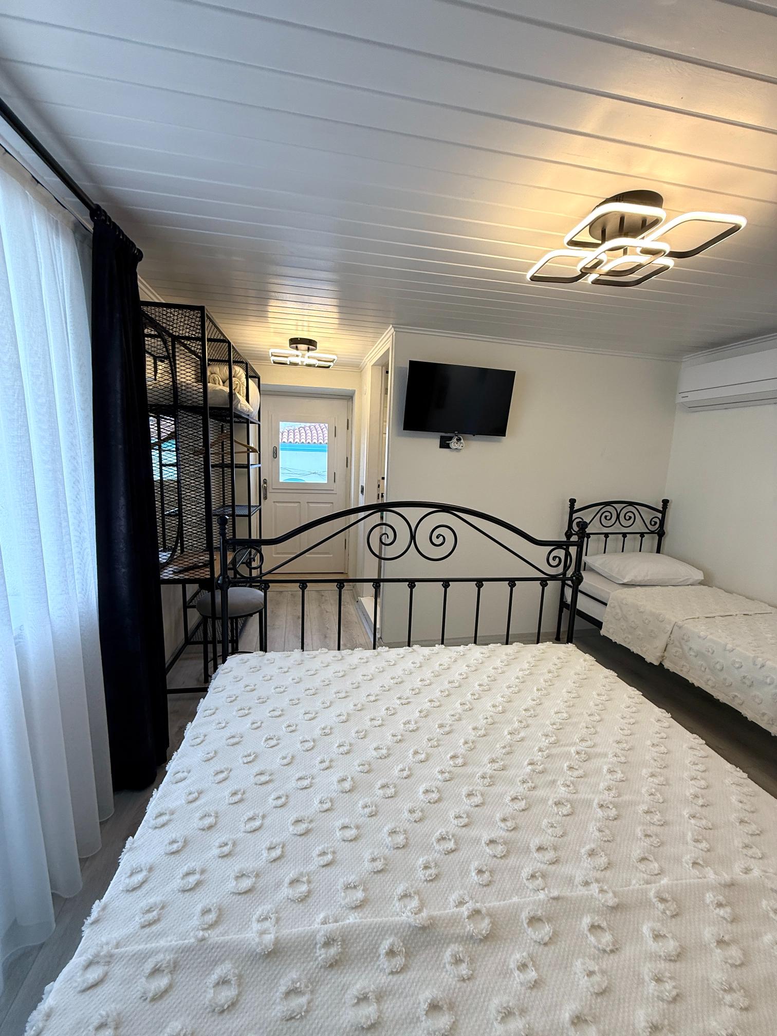 This historic Greek house studio is just 300 meters from the sea. It features a double bed and a single bed, private ensuite bathroom, satellite TV, Wi-Fi, and a mini fridge. Guests have access to a shared mini kitchenette with a microwave, kettle, coffee machine, and complimentary tea, coffee, water. There’s also a small common lounge area just outside.