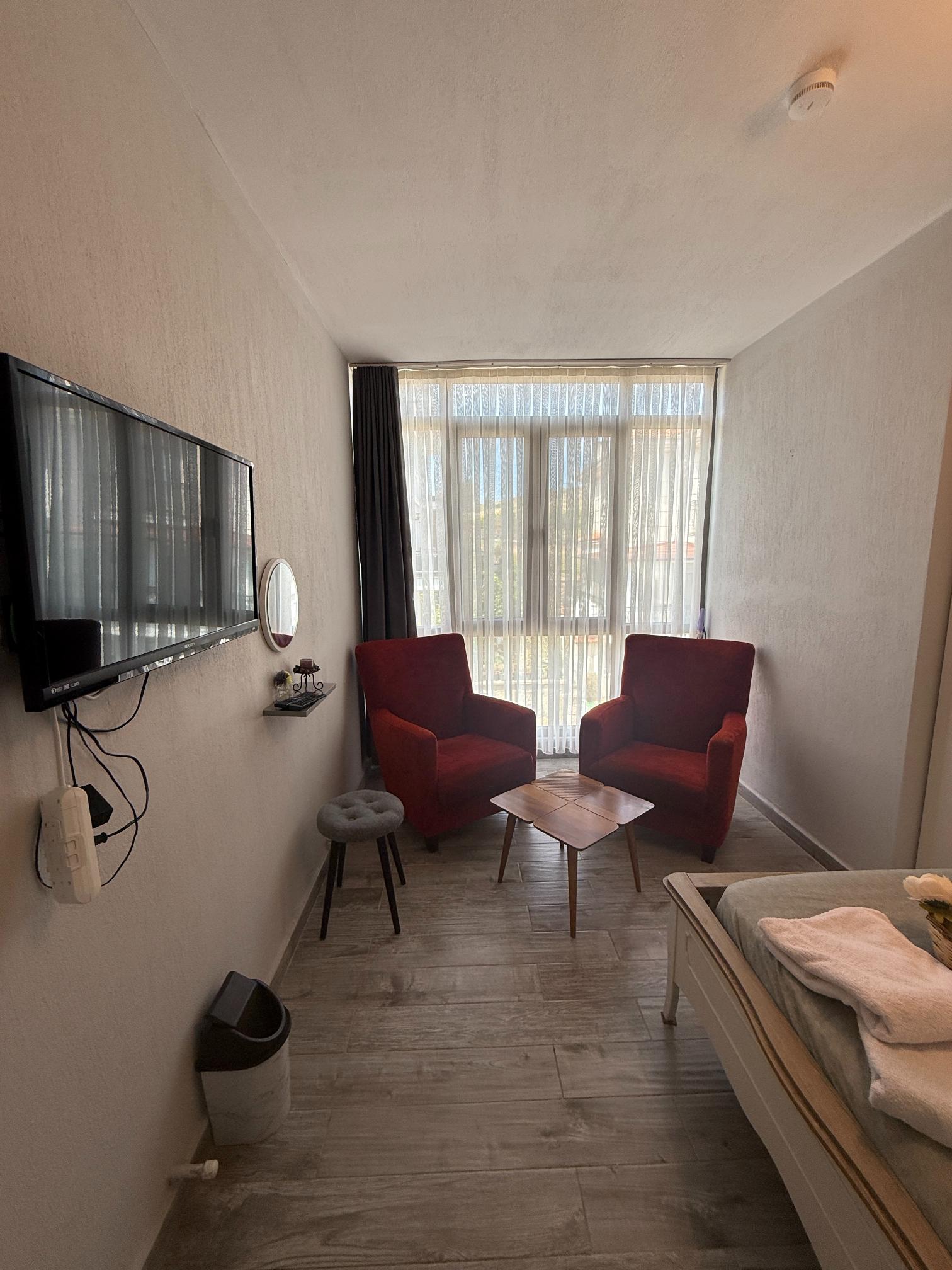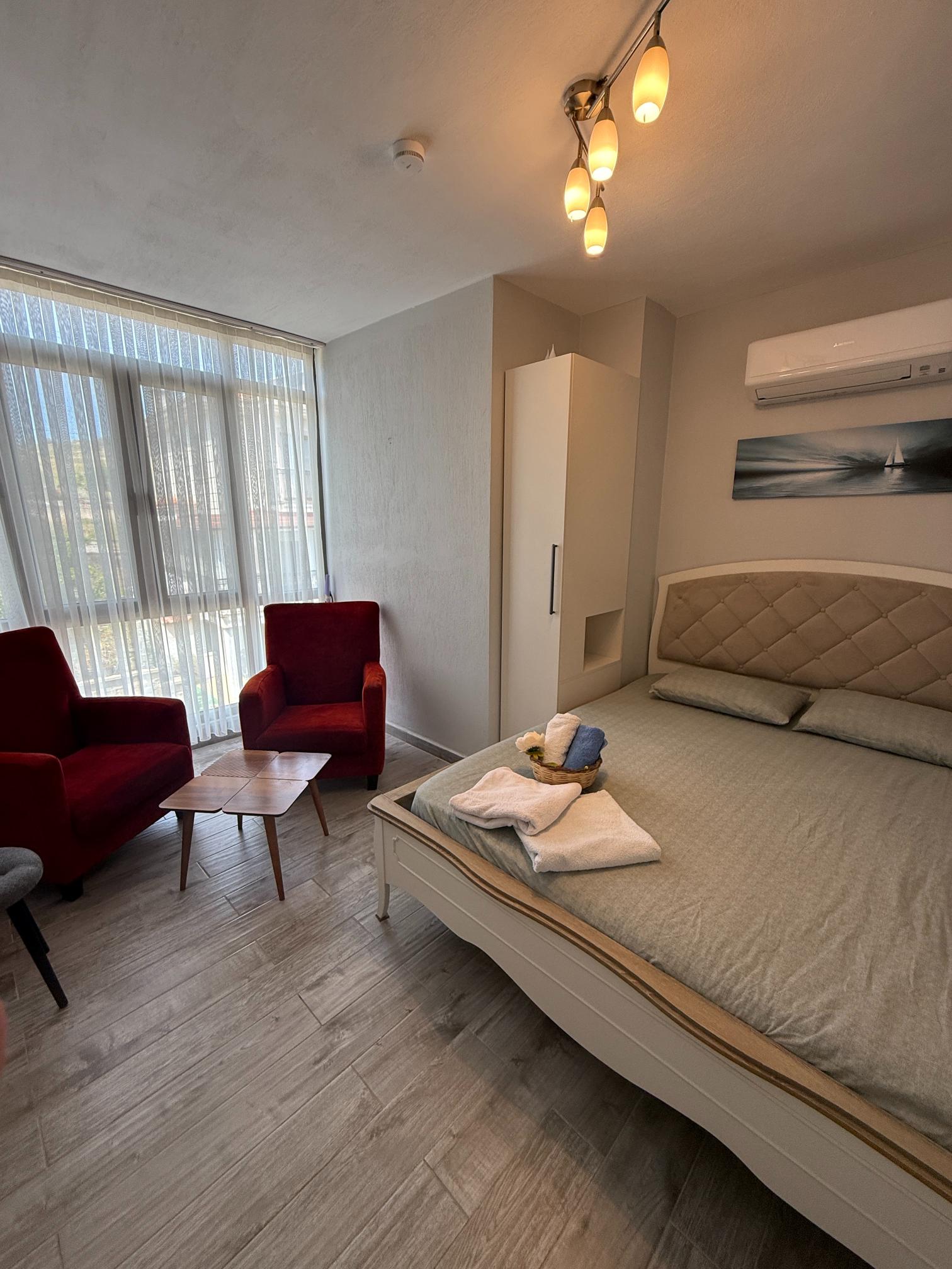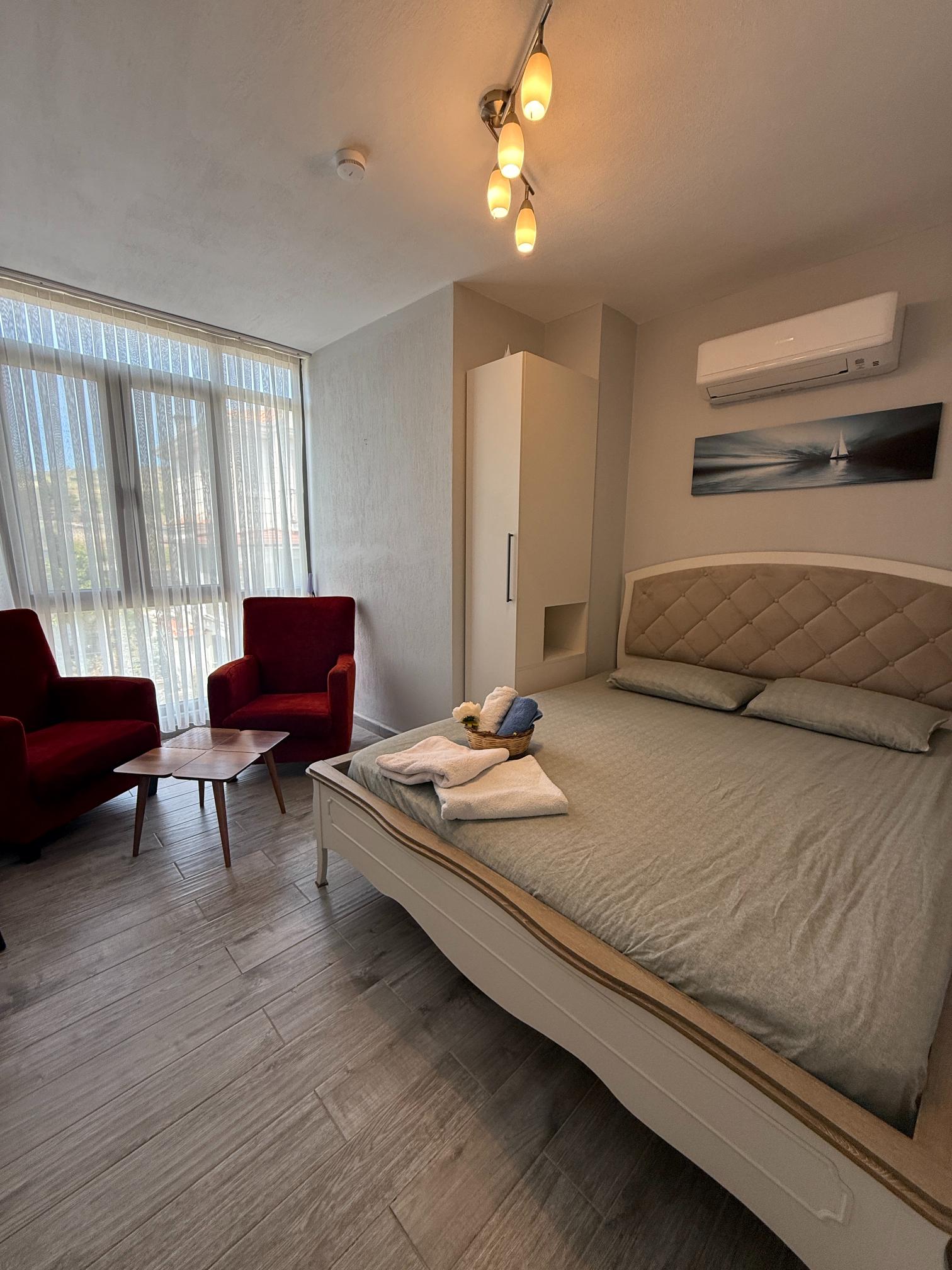 This unique 2-level listing combines the spacious sea-view studio with the top-floor 2-bedroom flat, creating a comfortable home for up to 7 guests. With 3 bedrooms, 2 bathrooms, balconies overlooking the sea, and private entrances to each level, it’s ideal for large families or friends seeking comfort and flexibility in beautiful Cunda.