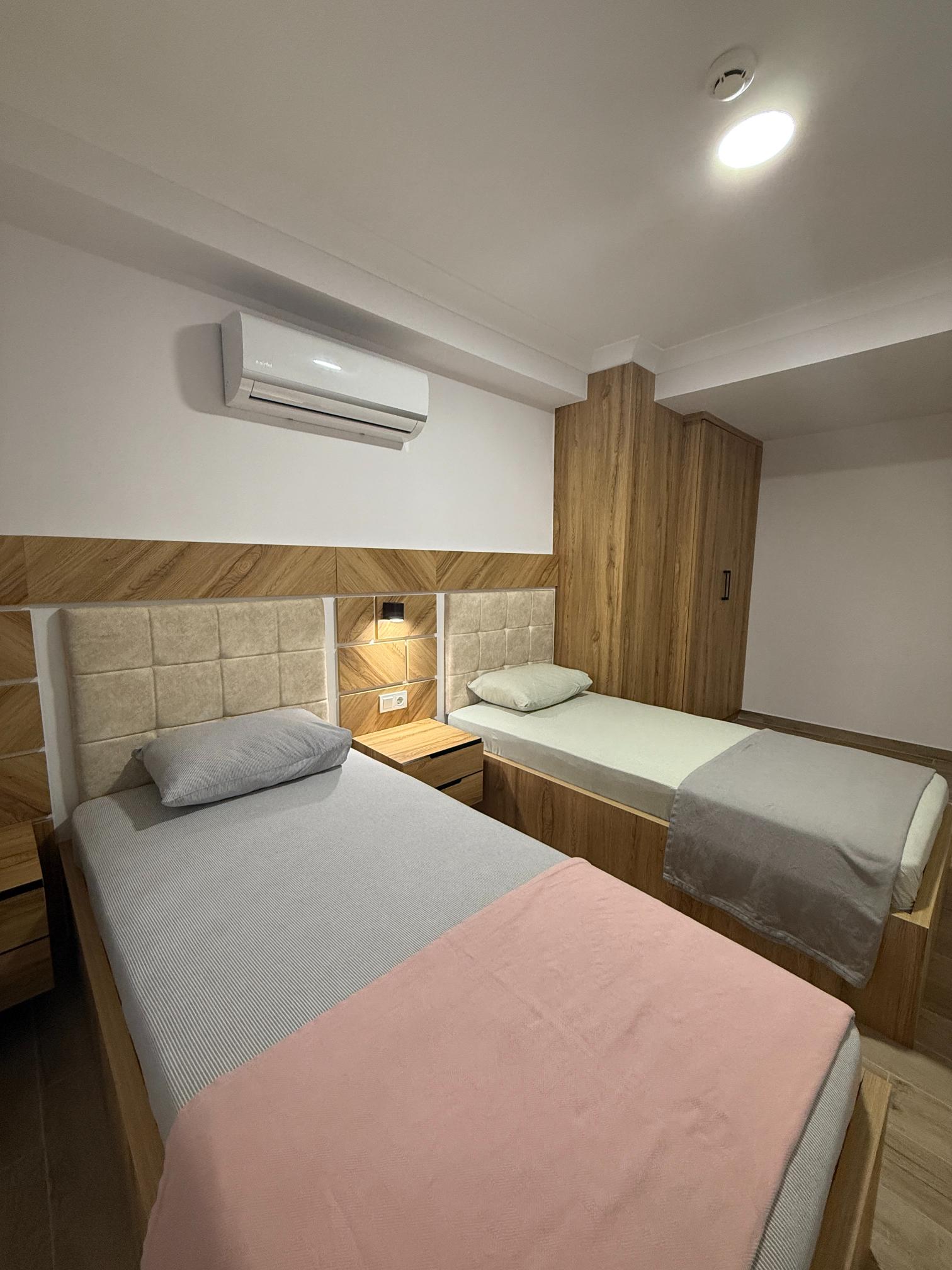 Enjoy a comfortable and convenient stay in this charming 2-bedroom apartment located in Ayvalık. Ideal for families or small groups, the flat features a large open living space with two sofa beds, a modern kitchen, and a private balcony. One bedroom has a double bed, the other a single bed-comfortably hosting up to 4 people. It is situated in a residential site with 24-hour security. Just 1.5 km from the beach, it’s the perfect base to explore the coast while enjoying peace and privacy.
