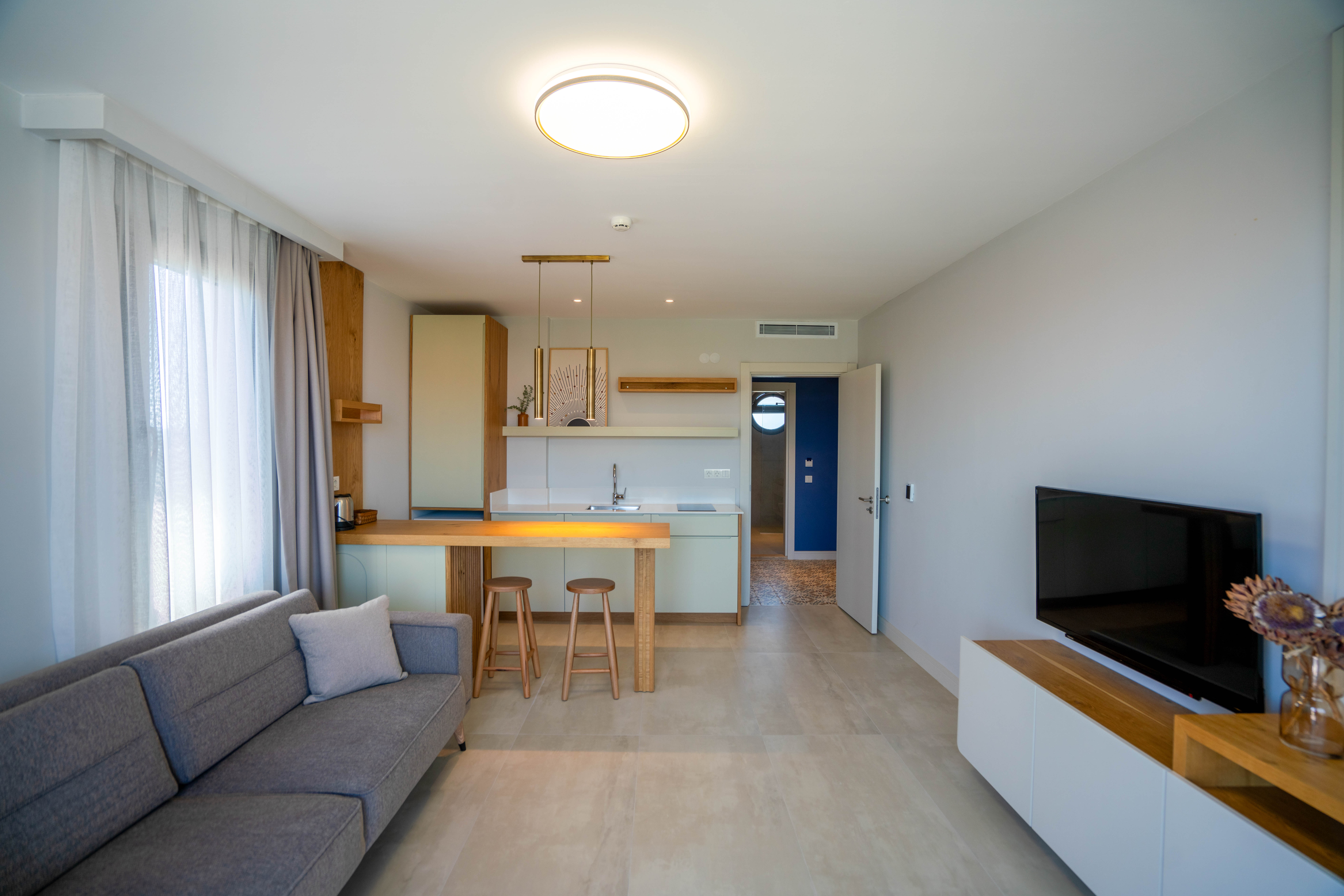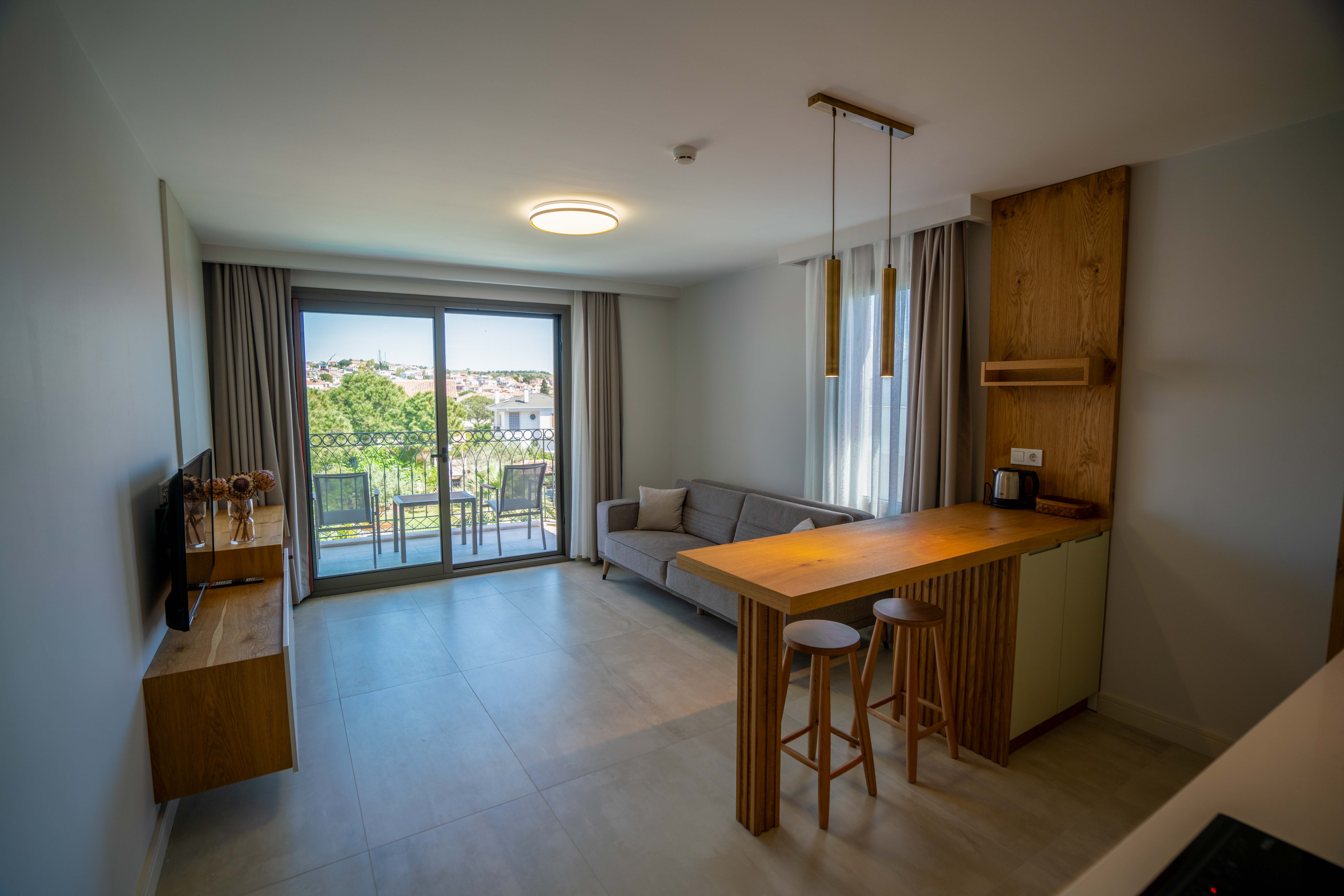 Enjoy your luxurious stay in our 1-bedroom apartment located in a central 24unit residence in Cunda, featuring a large shared pool and daily breakfast. Each apt comes with either a private balcony or garden terrace. It includes a double bed in the bedroom & a single sofa in the living room suitable for an additional guest. If you're traveling with a child, please inform us in advance. Just a short walk from Cunda's attractions, our place offers both comfort & convenience for up to 3 guests.