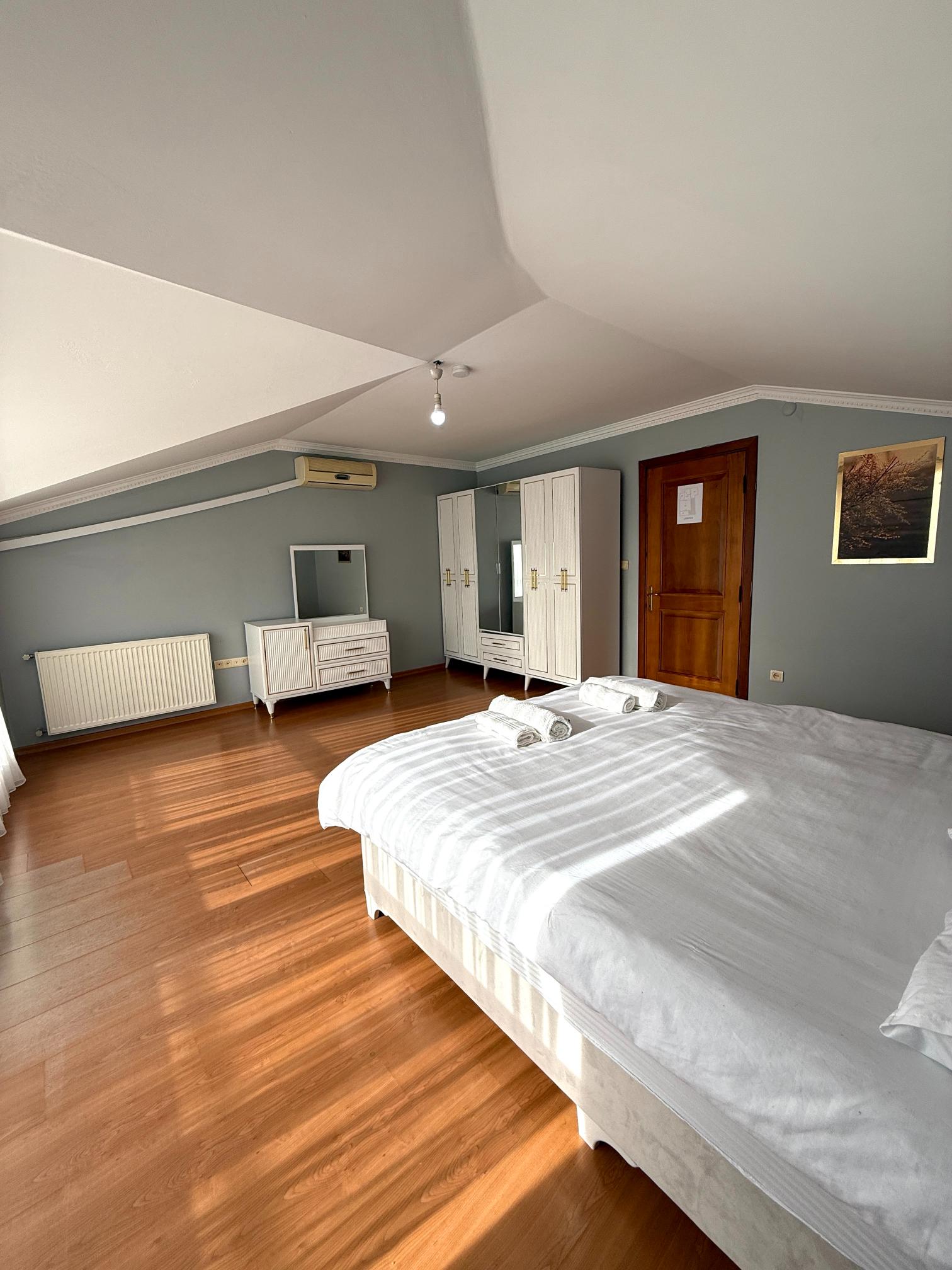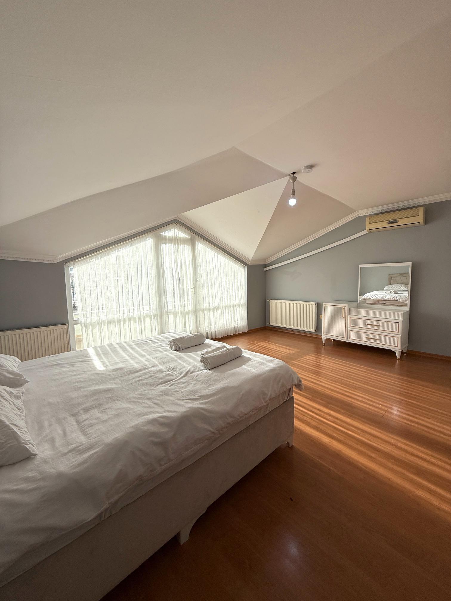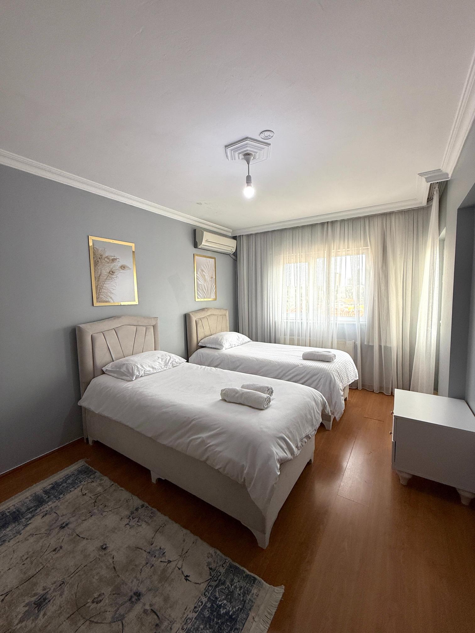 Perfect for families, this air-conditioned duplex apt in Şişli/Mecidiyeköy offers ample space and comfort for 6-8 guests. Spread across two floors. 1 BR with a double bed 2 Bedrooms, each with 2 single beds 1 living room with 2 sofa beds Fully equipped kitchen 1 bath & 1 toilet Additional living space for relaxation Elevator for easy access AC to keep you cool during warm summer days Located just a 15-minute walk from the metro, it offers quick and easy access to Istanbul’s major attractions.